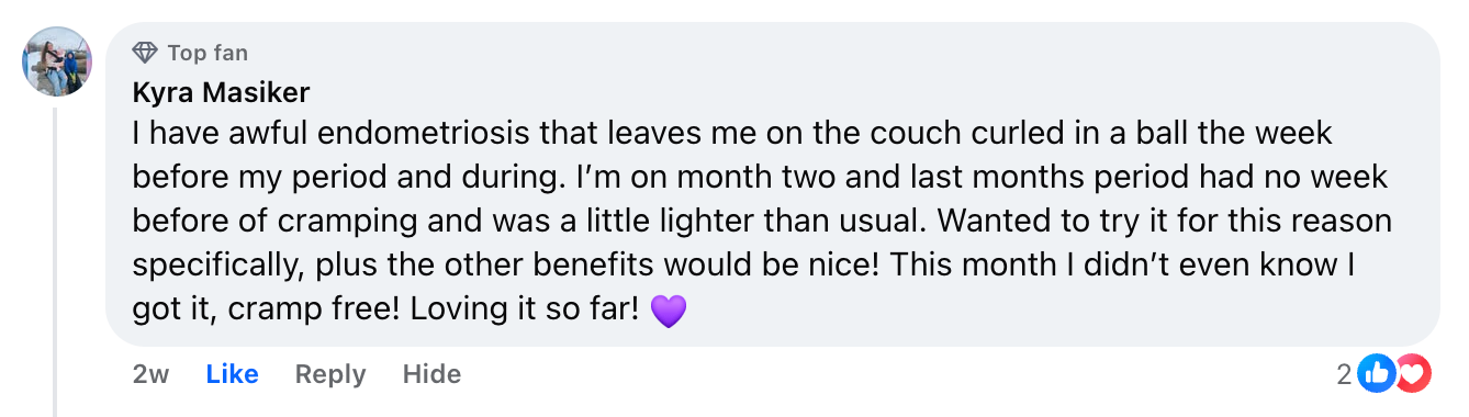 Increase in satisfaction with menstrual cycle