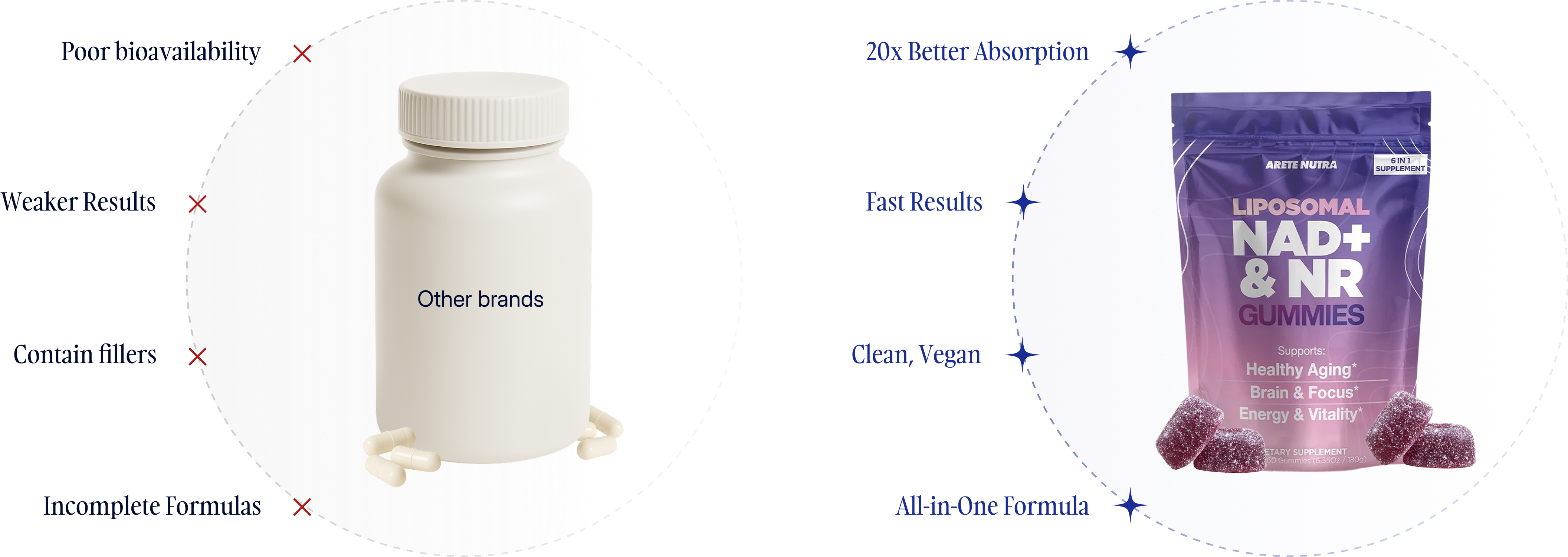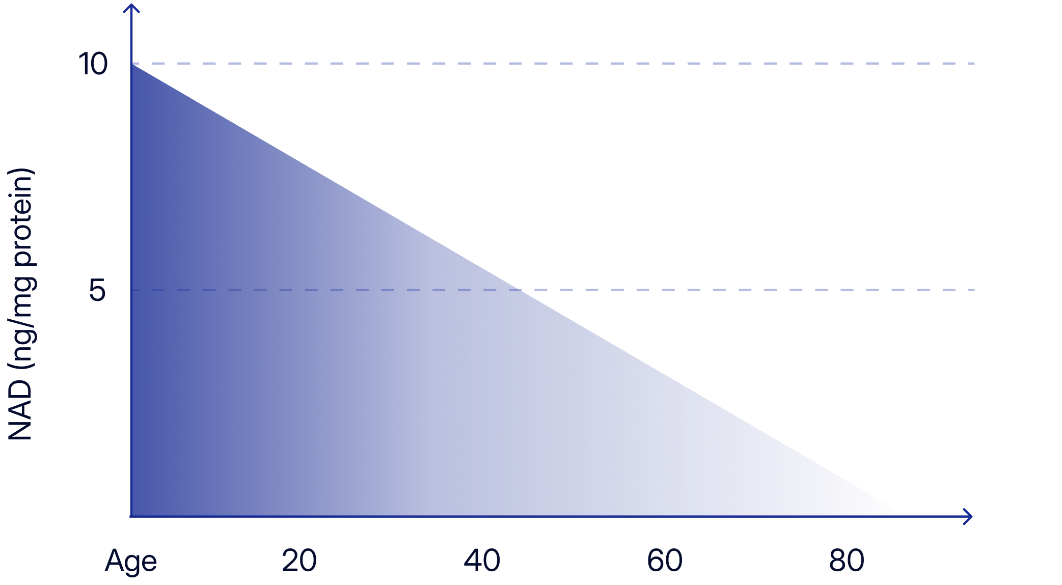 Starting in your 30s, your body’s NAD+ levels begin to fall — dropping by up to 60% by age 50.This isn’t just a number — it’s the root cause behind feeling tired, unfocused, and older than you are.